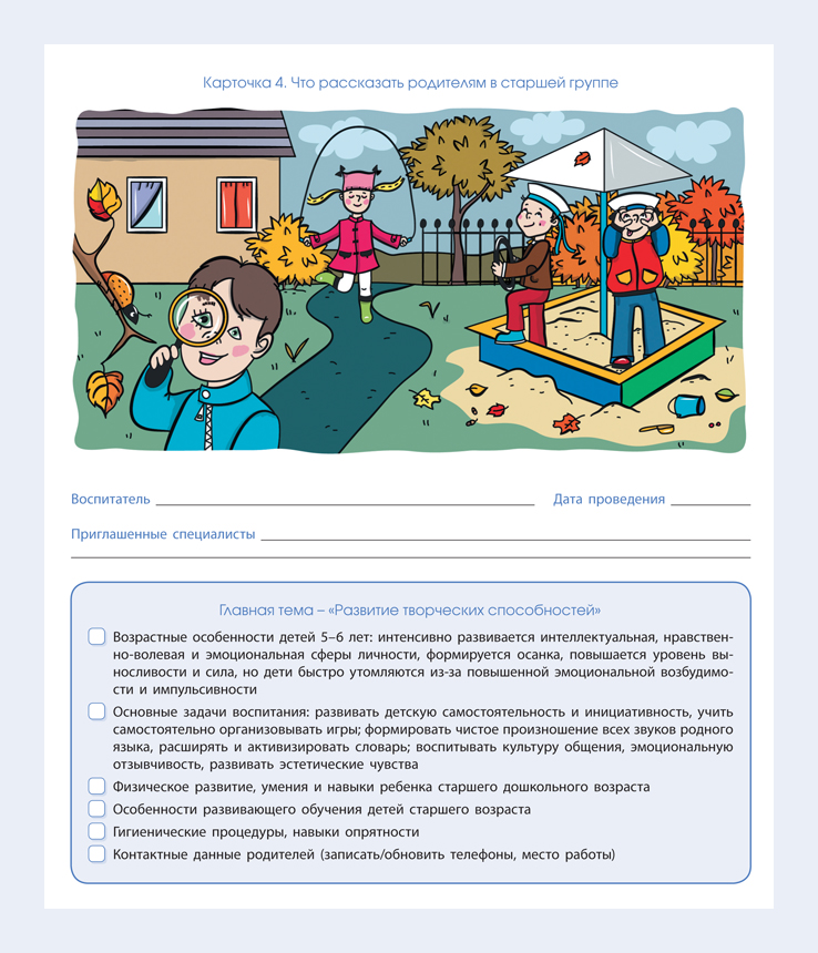 Карточка 4. Что рассказать родителям в старшей группе