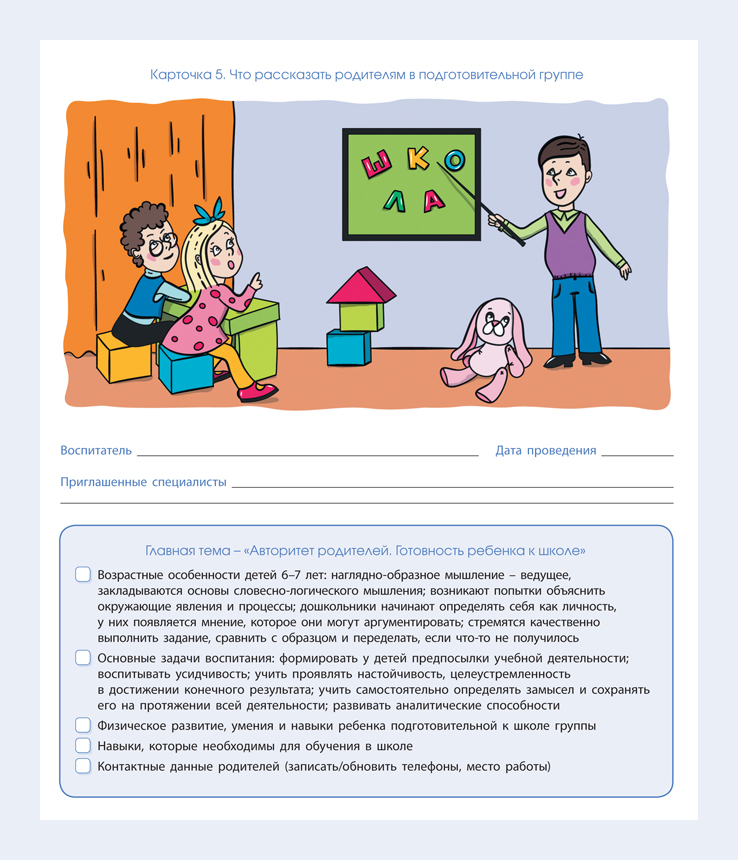Карточка 5. Что рассказать родителям в подготовительной группе