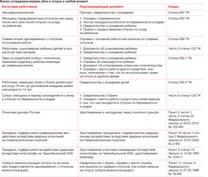 | Женщины перед декретным отпуском или сразу после него (или после отпуска по уходу за ребенком) | 1. Справка о беременности 2. Листок нетрудоспособности по беременности и родам 3. Свидетельство о рождении ребенка 4. Приказ о предоставлении отпуска по уходу за ребенком |