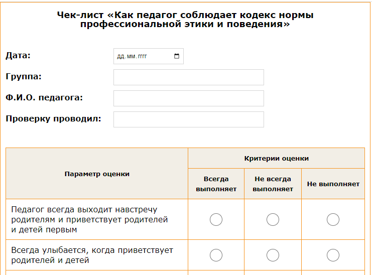 Чек-лист «Как педагог соблюдает кодекс нормы профессиональной этики и поведения»