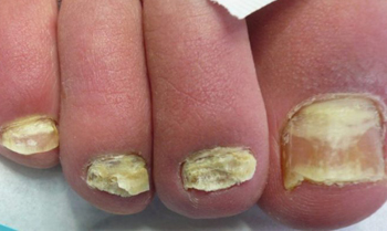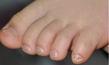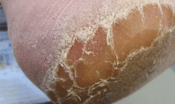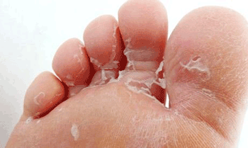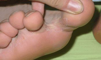 - Микротрещины в межпальцевых складках кожи между первым и вторым и (или) четвертым и пятым пальцами стоп.